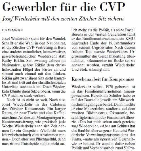 Damit der Traum vom Eigenheim kein Traum bleibt: Josef Wiederkehr in den Nationalrat